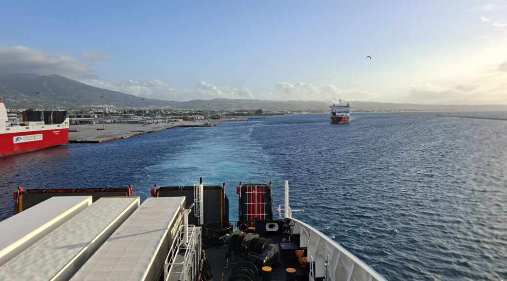 die wir bisher gemacht haben geht zu Ende. Morgens gehen wir noch mal im Meer baden, das Wasser ist wirklich toll und dann ziehen wir gemütlich los Richtung Fähre, die fährt pünktlich auf die Minute( griechische Minute) ab. Wir haben eine tolle Kabine, morgen kommen wir in Ancona an und fahren dann los.