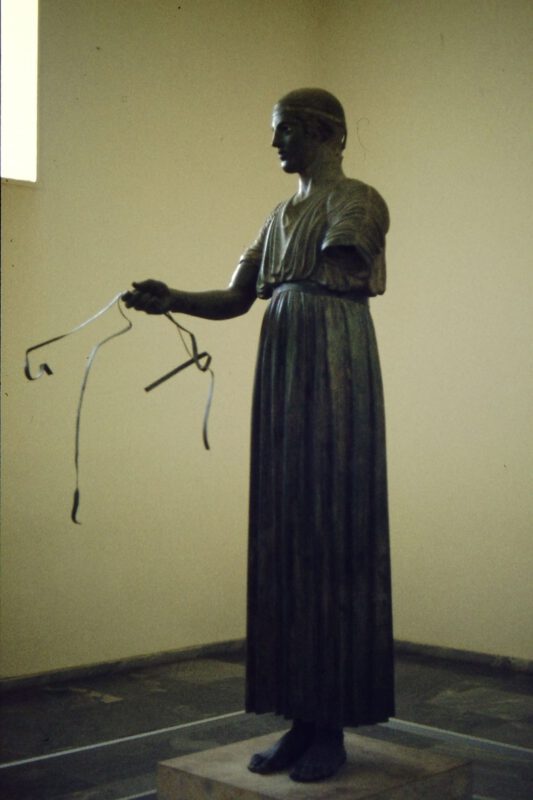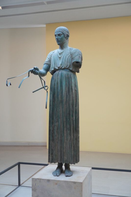 Eine spannende Entdeckung machen wir allerdings: Als wir durchs Museum laufen und ich die Statue vom Wagenlenker von Delphi sehe, sage ich noch zu Bettina, das Bild kenne ich das habe ich schon mal gemacht. Bettina meinte auch sie kann sich an diese Landschaft irgendwie erinnern.