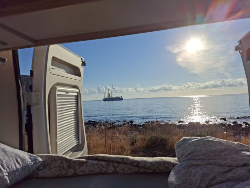 Als wir heute morgen aufgewacht sind und die Hecktüren von unserem Camper aufgemacht haben, dieser Anblick.