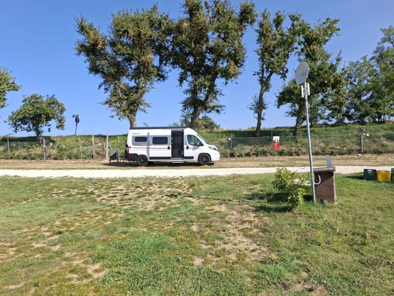 Wir enden auf dem Bauernhof Azienda Bartolacci etwas nördlich von Ancona. Es sind morgen nur noch ca 1 Stunde zu fahren.