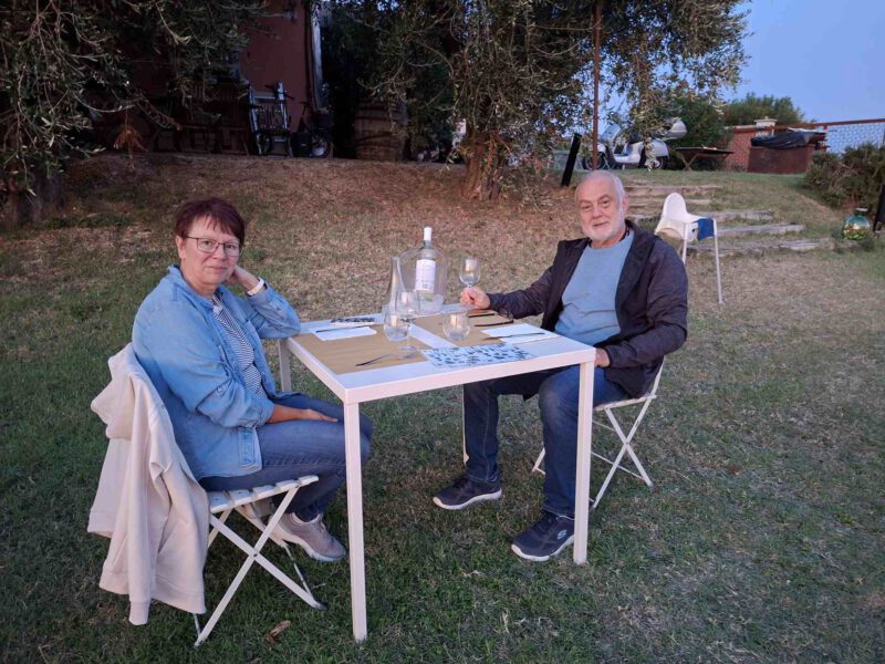 Der Campingplatz ist nett, Sanitär wirklich sehr einfach in einem Container aber sehr sauber. Aber die Leute da sind super nett und abends empfängt der Besitzer seine Gäste in seinem Garten und serviert selber gemachte Pizza und seinen eigenen Wein.
