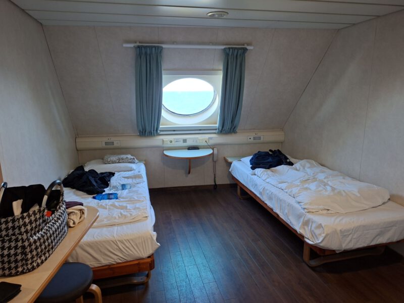 Wir beziehen unsere Kabine und machen es uns dann an Bord bequem. Der Bierpreis ist heftig (5,60 € für 0,4l) aber egal….. Urlaub.