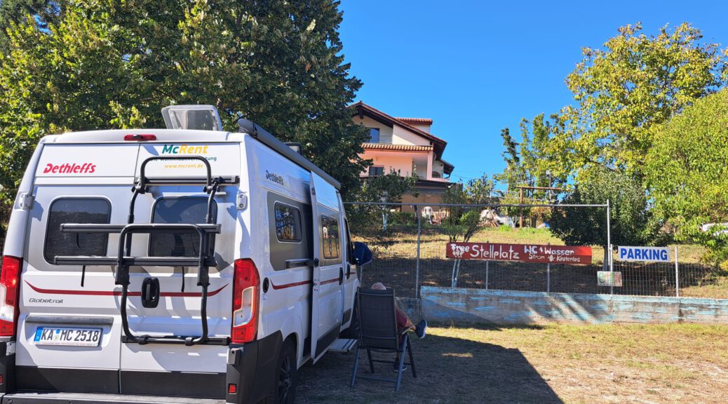 Wir starten gemütlich nach dem Frühstück am Campingplatz fahren nach Igoumenitsa trinken dort am Hafen einen Kaffee und nehmen dann die Strecke in Angriff. Die Landschaft hier ist unglaublich, Berge, Täler, einsame Dörfer, unterwegs eine alte Steinbrücke und gegen Mittags um 15 Uhr treffen wir auf einem Wohnmobilstellplatz einer Taverne ein wo wir übernachten wollen.