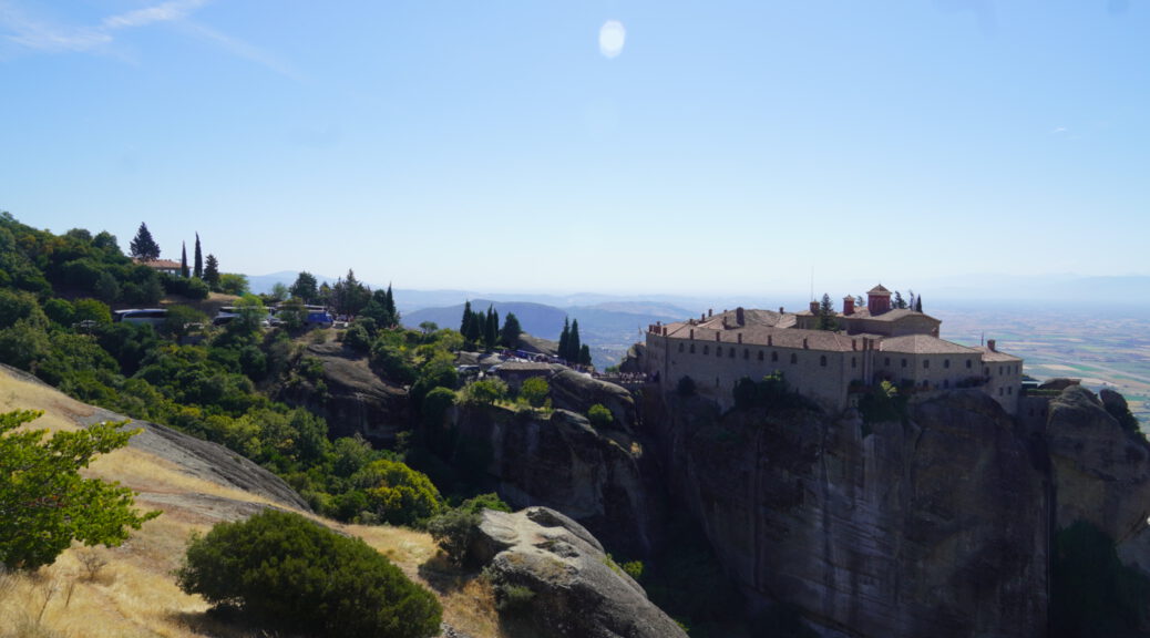 Wir laufen nach Kalambaka und wollen eigentlich noch mal hoch zu den Klöstern, aber es ist so unglaublich heiß dass wir die Wanderung abbrechen und im Ort gemütlich Kaffee trinken und einen Gyros Döner essen.